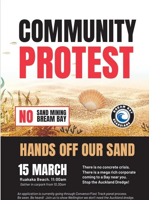 Sand mining turns sea floors into deserts, erodes coastal protections, ruins surf breaks, kills scallops, and threatens the habitats of critically endangered species like the Tara Iti - our most endangered bird.